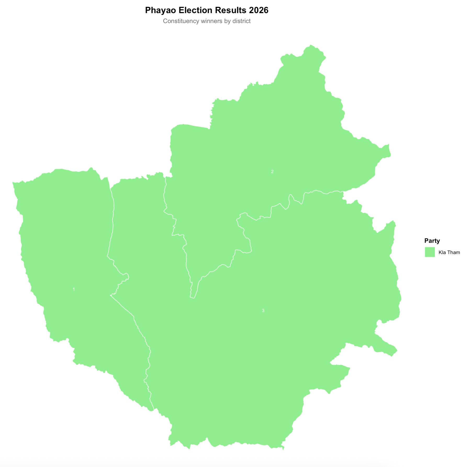 Phayao is not the only province where this happened. In Ubon Ratchatani, the Thai Ruam Palang Party came first in the party-list vote in a number of constituencies. Meanwhile, Palang Pracharath won the most party-list votes in the constituency seat of its leader, Trinuch Thienthong. Overall, where four parties came in first on the party-list vote in any constituency in 2023, eight parties accomplished this feat in 2026.