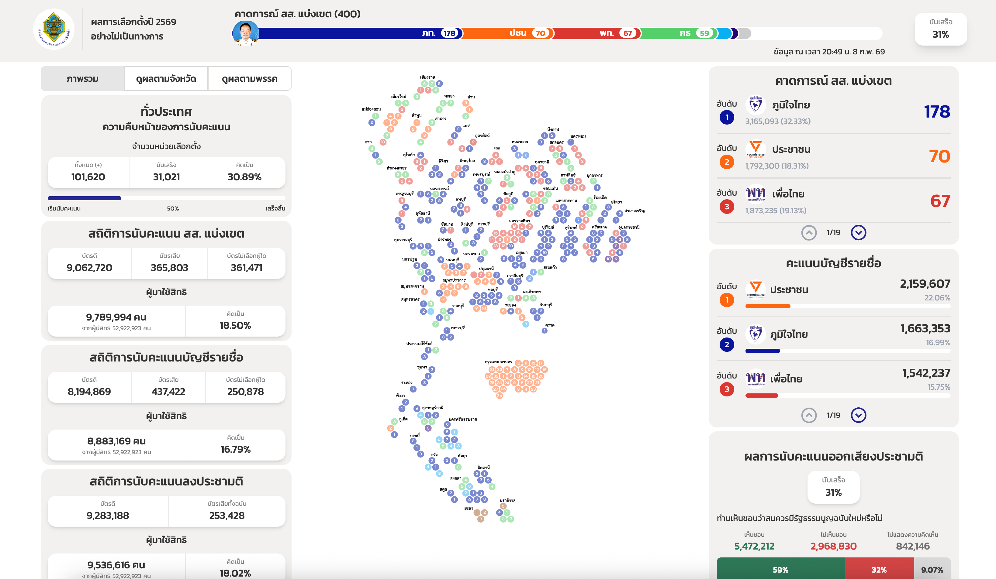 Bhumjaithai: 198 seats (178 constituencies, 20 party-list)